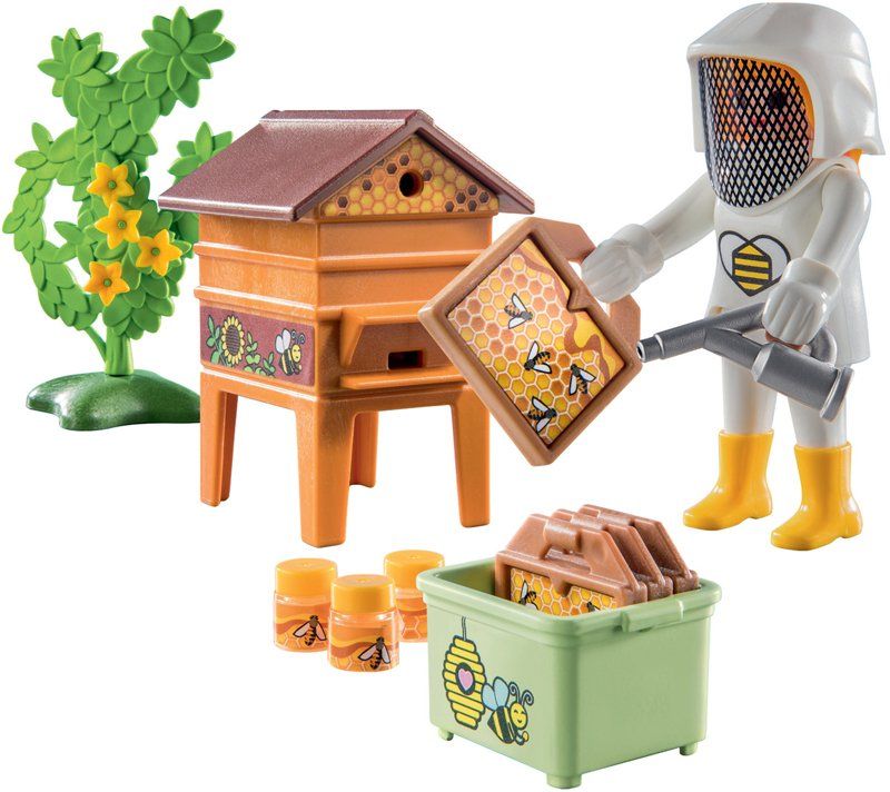 Contient 2 personnages (un apiculteur et un enfant) et des accessoires pour apiculteurs.
